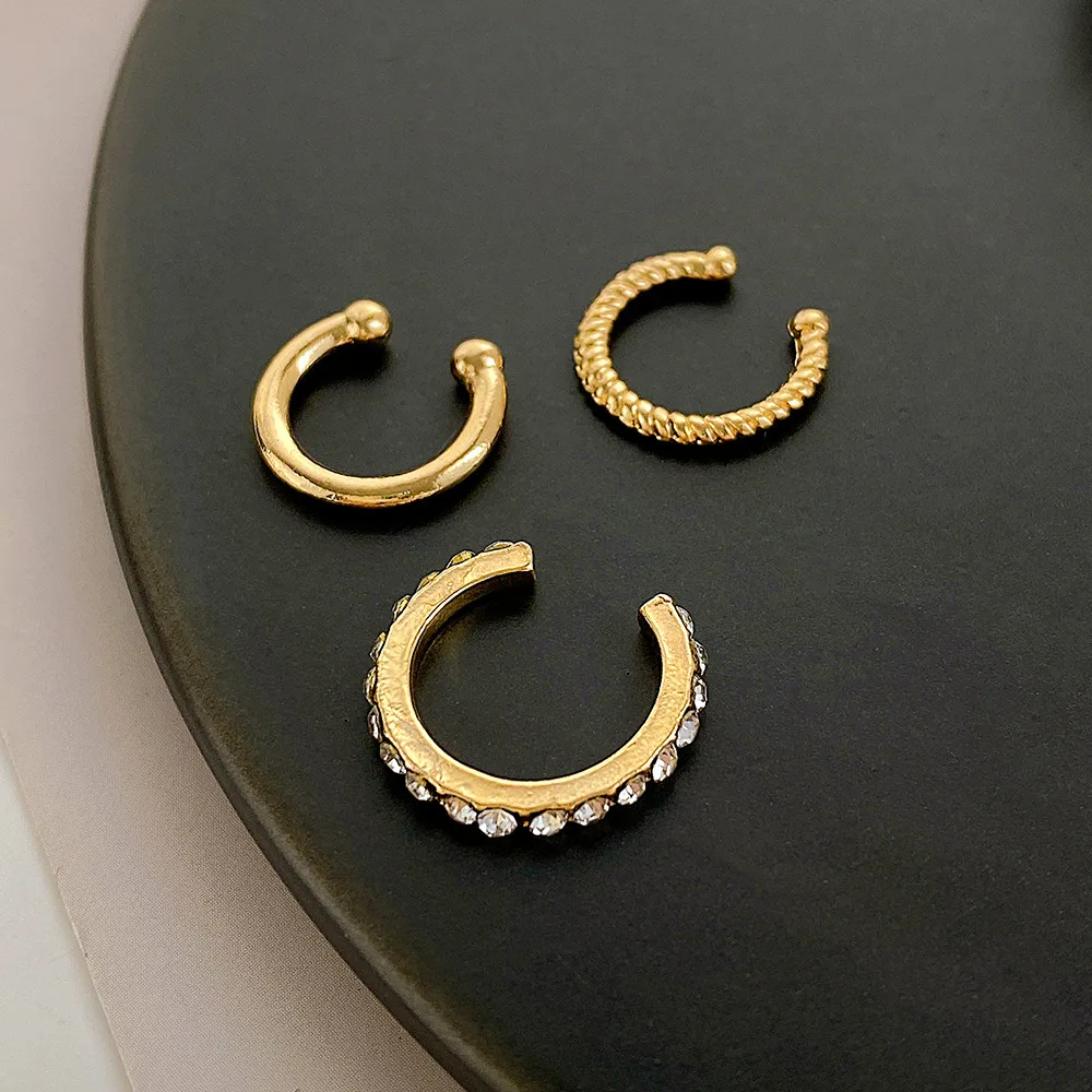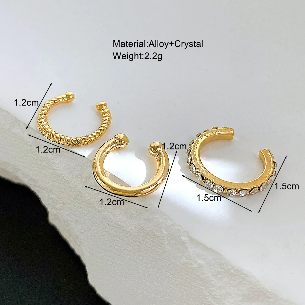 "Gold Crystal Clip Earrings – Minimalist Rhinestone Design"